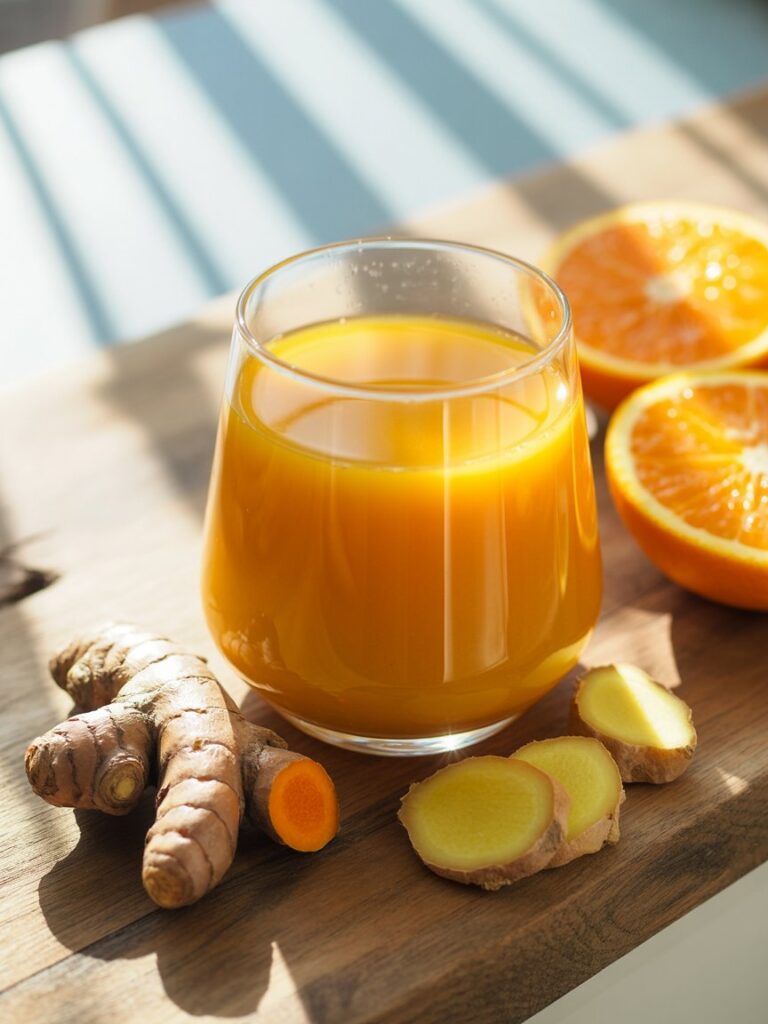 Why it works: Turmeric and ginger are known for their anti-inflammatory properties, while vitamin C from citrus supports immunity.