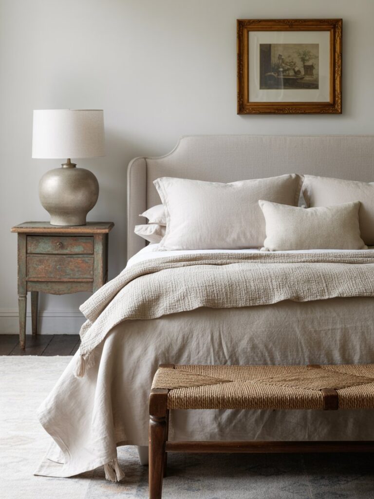 - Neutral walls (creamy white, soft greige, warm taupe)