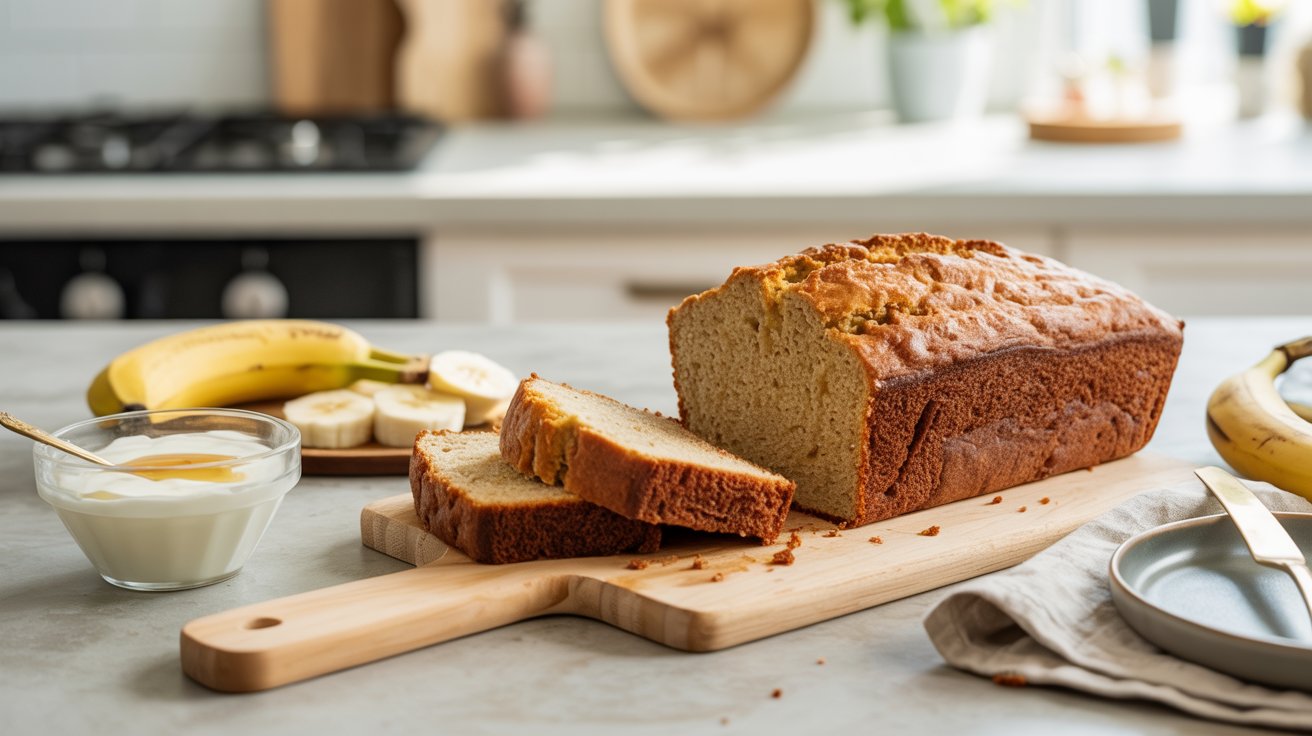 Soft, lightly sweet banana bread made extra satisfying with protein-rich Greek yogurt.