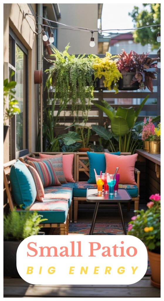 Vertical styling draws the eye upward, making small patios feel taller, lighter, and more dynamic.